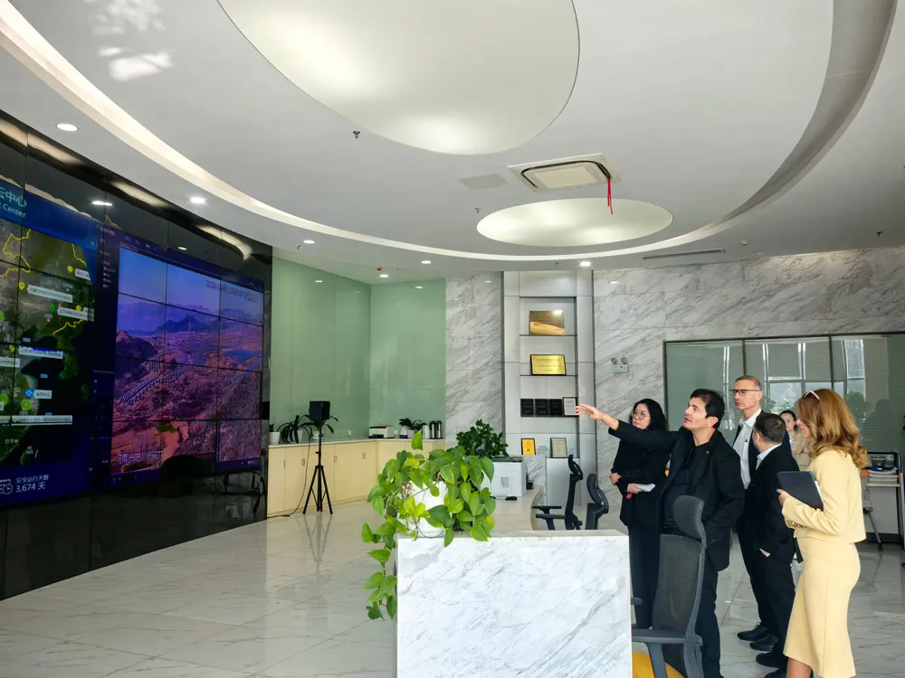 訪問期間,代表團先后參觀了企業(yè)展廳、智能化組件生產(chǎn)線及產(chǎn)品實驗室。在展廳內(nèi),代表團系統(tǒng)了解了騰暉光伏的發(fā)展歷程、技術(shù)演進及全球化項目成果,重點關(guān)注高效N型TOPCon組件、異質(zhì)結(jié)(HJT)、BC技術(shù)等核心產(chǎn)品。