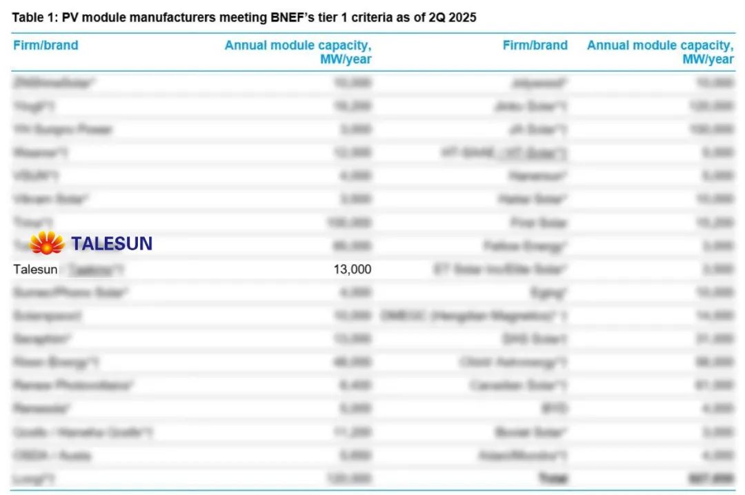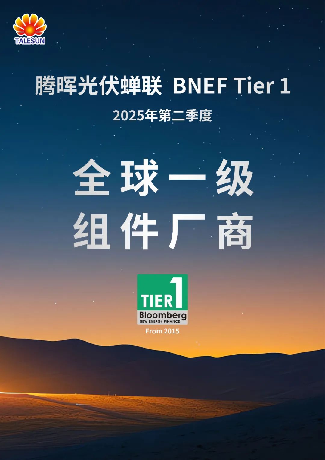 2025年6月2日,全球權(quán)威研究機(jī)構(gòu)彭博新能源財(cái)經(jīng)(BloombergNEF,簡(jiǎn)稱BNEF)正式公布2025年第二季度Tier 1全球一級(jí)光伏組件制造商榜單。在光伏行業(yè)競(jìng)爭(zhēng)白熱化、新規(guī)嚴(yán)苛施壓的大背景下,騰暉光伏憑借卓越的技術(shù)實(shí)力、穩(wěn)健的財(cái)務(wù)表現(xiàn)以及前瞻性的全球化市場(chǎng)布局,再度榮登該榜單,成為新規(guī)實(shí)施后為數(shù)不多持續(xù)入圍的光伏企業(yè)之一。此次蟬聯(lián),不僅是對(duì)騰暉光伏行業(yè)領(lǐng)先地位的有力印證,更彰顯了其在高門檻、嚴(yán)標(biāo)準(zhǔn)下的非凡綜合競(jìng)爭(zhēng)力。