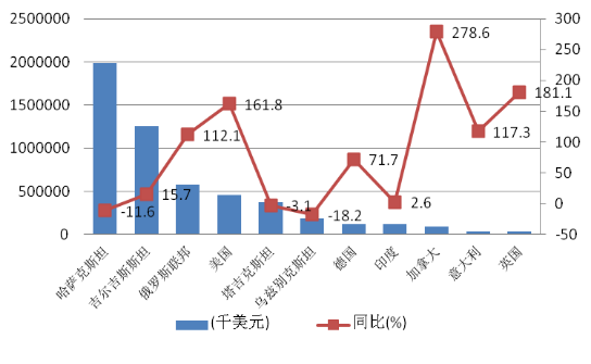 從主要口岸看,1-5月,中哈霍爾果斯邊境合作中心和阿拉山口綜保區(qū)貿(mào)易量值增長顯著。進(jìn)出口貨運量為11.09萬噸,貿(mào)易值5350萬美元。其中,5月份進(jìn)口貨運量為1.46萬噸,環(huán)比增長265.82%;貿(mào)易值564萬美元,環(huán)比增長143.92%;魻柟箙^(qū)域出口果蔬量跌值增。果蔬出口共計7.84萬噸,同比減少2.61%。貿(mào)易額為9587萬美元,同比增長18.27%,主要出口至哈薩克斯坦。巴克圖口岸出口農(nóng)產(chǎn)品4.2萬噸,同比增長4.1%,貿(mào)易額3345萬美元,同比增長19.3%。主要出口農(nóng)產(chǎn)品為鮮蘋果、鮮桃和鮮番茄等。其中,出口地產(chǎn)鮮果蔬2.4萬噸,同比增長1.1倍,貿(mào)易額1800萬美元,同比增長1.3倍。1-5月吐爾尕特口岸進(jìn)出口貨運量值齊跌。進(jìn)出口貨物25.3萬噸,貨值15.2億美元,同比分別下降8.2%和4.2%;其中進(jìn)口貨物2.5萬噸,同比下降2.5%,貿(mào)易額2683.9萬美元,同比增長17.6%;出口貨物22.8萬噸,貿(mào)易額14.9億美元,同比分別下降8.7%和4.5%。紅其拉甫進(jìn)出口貨物2萬噸,去年同期相比(下同)下降29.5%,貨值1.2億美元,同比下降10.7%;其中,進(jìn)口貨物1063.8噸,與去年同比增長4.1%,貿(mào)易額349.5萬美元,同比增長23.2%;出口貨物1.9萬噸,與去年同比下降30.8%;貿(mào)易額1億美元,同比下降11.6%。