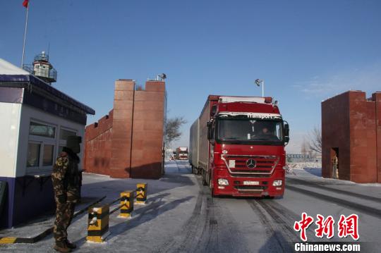 中國(guó)境內(nèi)的貨車在經(jīng)過查驗(yàn)后漸漸駛出。