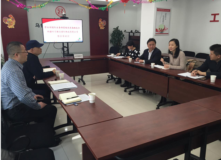 2017年2月16日上午11:30,假工行烏魯木齊市北京南路支行三樓多功能會議室,召開了工行與我公司關于購付匯的“銀企座談會”。參加本次會議的有---環(huán)宇捷安:李清貴董事長、梁志軍總經(jīng)理、涉外經(jīng)理麗薩;工行:自治區(qū)分行國際業(yè)務部副總經(jīng)理覃英、國際業(yè)務部執(zhí)行經(jīng)理朱玉文,工行北京南路支行李行長、支行涉外業(yè)務經(jīng)理夏小雙,共7人參加會議,會議由李行長主持。